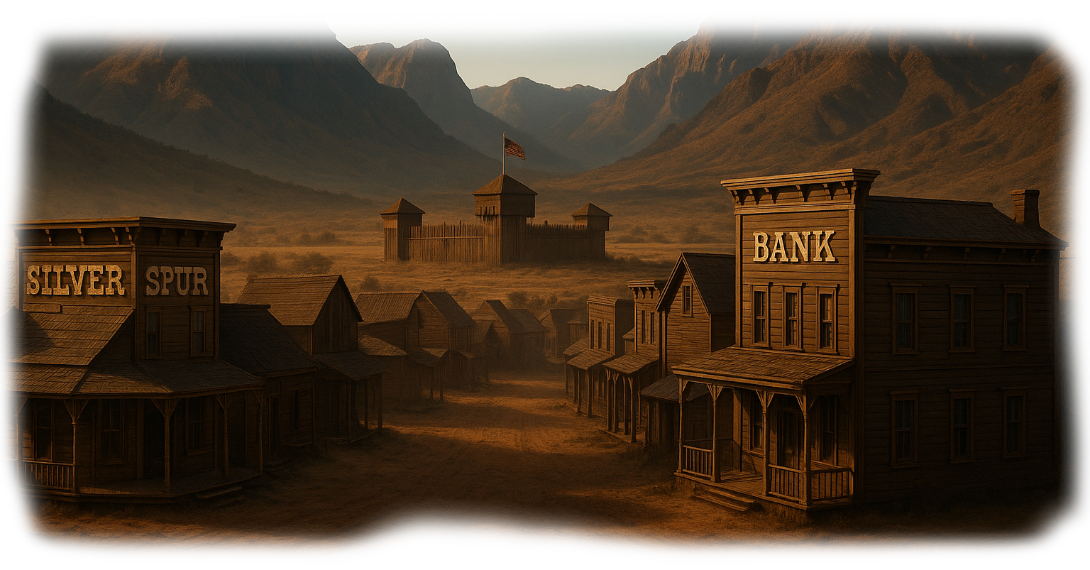 Au cœur de la cité se trouve le Silver Spur, tenu d'une main ferme par Mary Whitmore, une femme mystérieuse à l'influence indéniable. Ce saloon n'est pas simplement un lieu de détente mais un véritable carrefour des informations et intrigues locales, où chaque verre servi peut cacher un secret ou sceller un destin. Mary, maîtresse incontestée des lieux, joue habilement avec les pouvoirs en place, détenant des secrets capables de bouleverser l'équilibre de la ville.